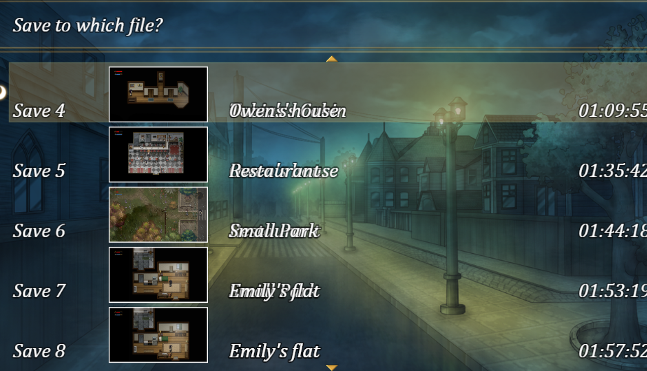 - Si on scroll trop vite avec la souris dans le menu de sauvegarde, on peut avoir le texte (nom de la map) qui se superpose.